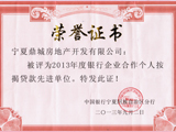 2013年捐款榮譽證書