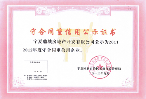 13年守合同重信用公示證書