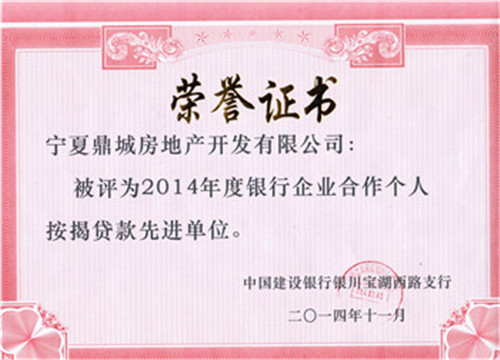 2014年度銀行企業合作個人按揭貸款先進單位(建設銀行)