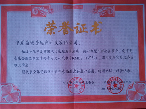 2015年向寧夏青基會捐款11萬元